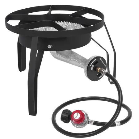 1 Burner Short Round Propane Gas Stove For Outdoor Cooking 225 000 Btu Camping Cooker With Removable Legs Adjustable Psi Regulator For Backyard Cooking Bbq Baking Frying