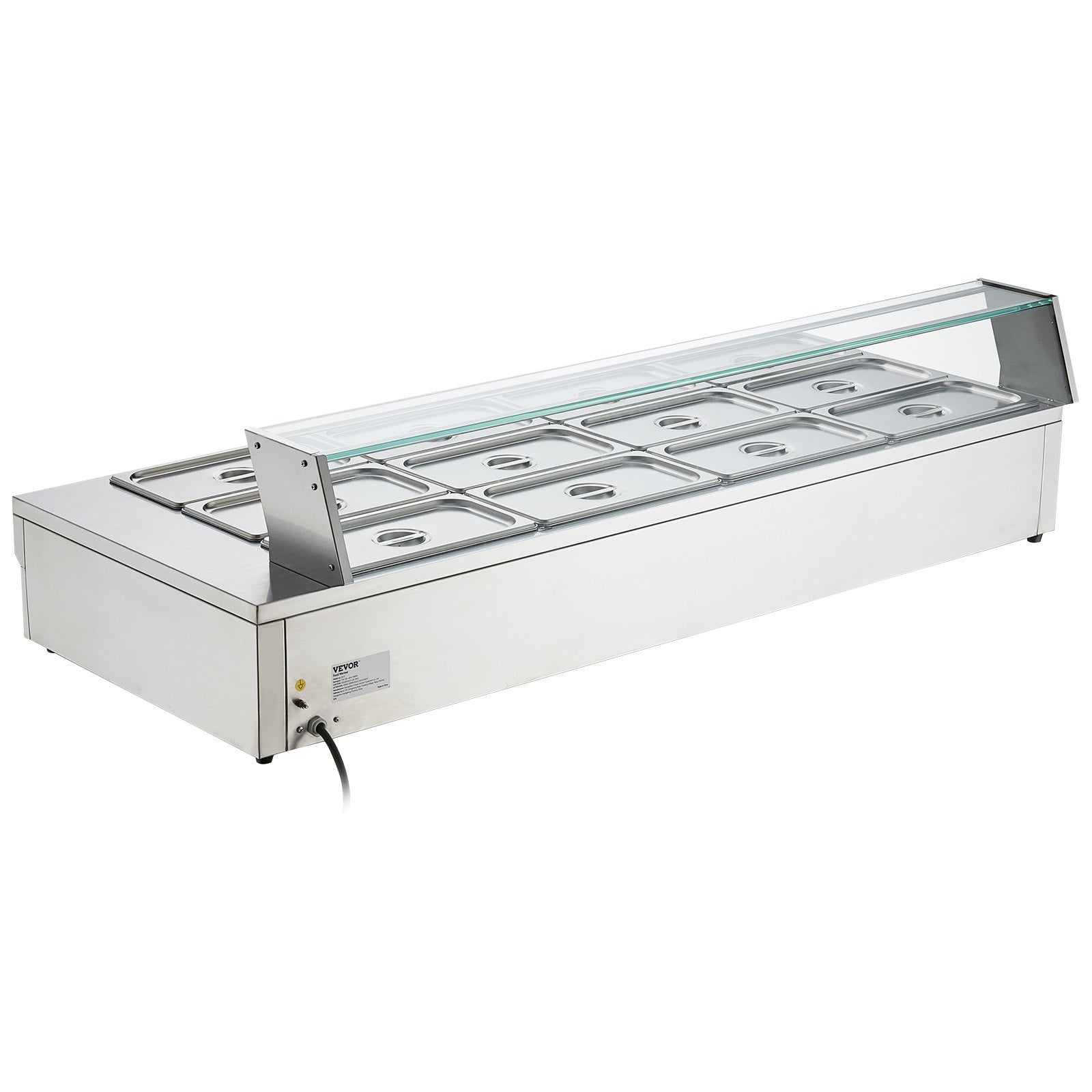12 Pan Commercial Food Warmer 12 X 8Qt Electric Steam Table With Tempered Glass Cover 1800W Countertop Stainless Steel Buffet Bain Marie 86 185F Temp Control For Catering Restaurant Silver