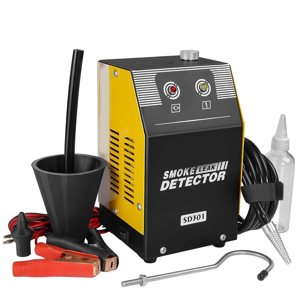 12V Dc Automotive Smoke Machine Leak Detector With Built In Air Pump Quick Detection User Friendly Interface Overheat And Freeze Protection For Evap Vacuum Diagnostic Testing Yellow Color
