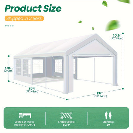 13' X 26' Party Tent Heavy Duty Event Tent, Temporary Emergency Shelter with Removable Side Walls with Church Window, Awning for Beach And Outdoor Camping, Wedding Tent Carport, Easy to Set Up, UV 50+, Waterproof