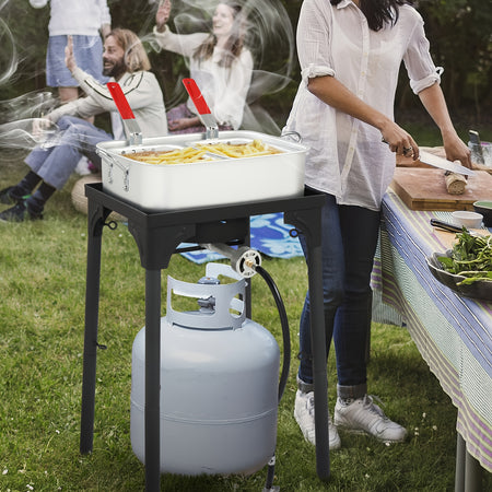 18Qt Propane Deep Fryer Gas Turkey Fryer Kit Black Round Steel Burner Stand With Silver Aluminum Pot