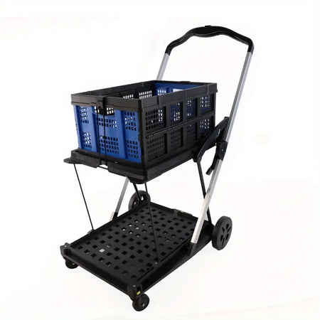 200 Lbs Capacious 2 Layer Folding Shopping Cart With Wheels Collapsible Storage Wagon For Groceries Sturdy Hand Truck For Everyday Hauling