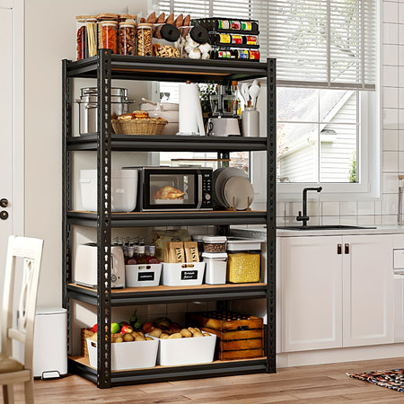 2000LBS Garage Shelving Storage Shelves Heavy Duty 5-tier Metal Shelving Units For Storage Adjustable Utility Shelf Rack For Kitchen Warehouse Basement Black 60" H X 28" W X 12" D Bookshelf