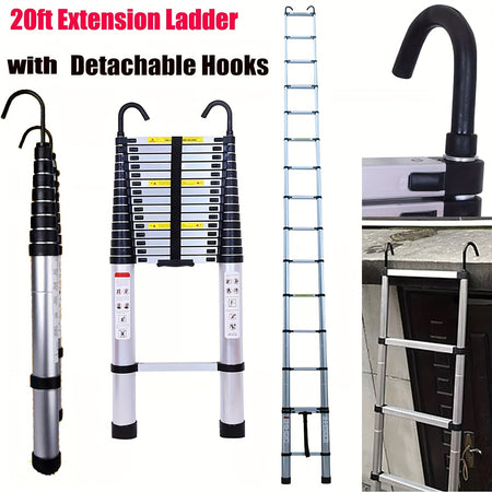 203Ft Telescoping Ladder With 2 Detachable Hooks 62M Aluminum Multi Purpose Extend Folding Step Ladders Extension Ladder Extendable Loft Ladder Safe And Compact Extension And Retraction Design 15 Step 330Lbs Capacity