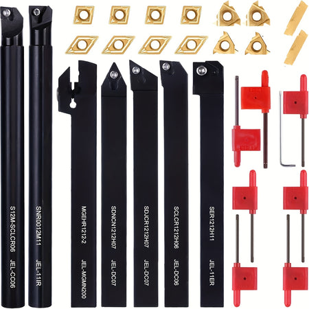 21pcs/set Lathe Turning Tools Set, High Toughness Lathe Turning Tool Set with 14 Carbide Inserts - Versatile Thread Bracket for Steel & Stainless, Includes 7 Holders, Durable 40Cr Steel Construction, Ideal Gift for DIY Enthusiasts & Professionals