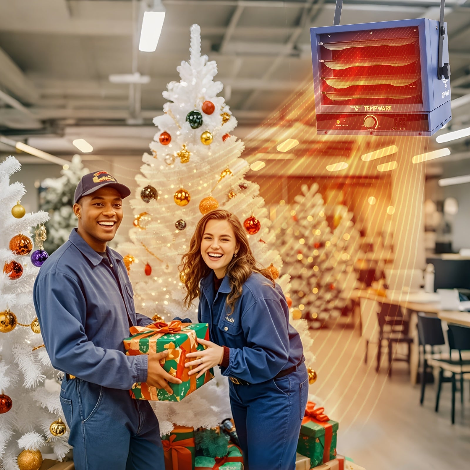 240V 5000W Hardwired Garage Heater Adjustable Thermostat 3 Heating Settings Overheat Protection Manual Control Blue