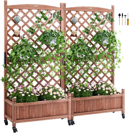 2PCS Raised Garden Bed with Trellis, 60"x13"x61.4" Outdoor Raised Wood Planters with Drainage Holes, Free-Standing Trellis Planter Box for Vine Climbing Plants Flowers in Garden, Patio, Balcony
