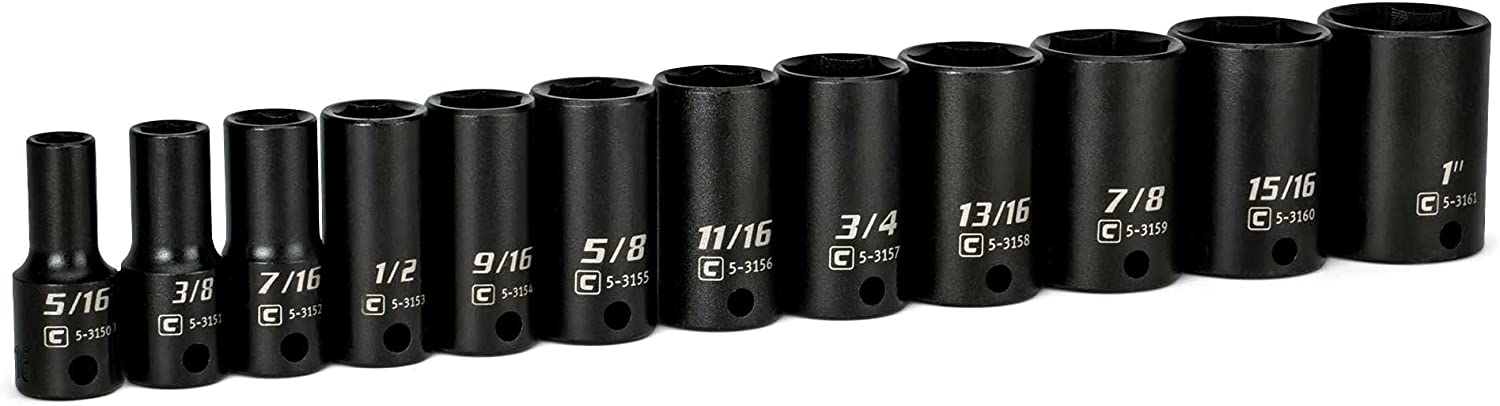 3/8 in. Drive Semi-Deep Impact Sockets Set, SAE, 5/16 to 1 in, 12-Piece