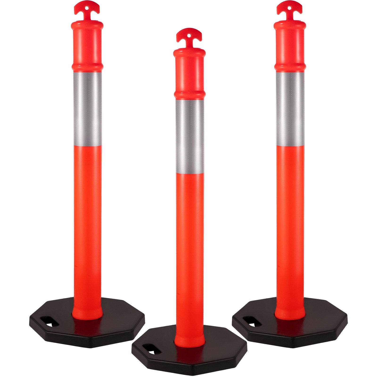 3Pack Traffic Delineator Posts 44 Inch Height Orange Delineator Cones With Rubber Base 16 Inch Pe Delineator Post Kit 10 Inch Reflective Band For Construction Sites Facility Management Etc
