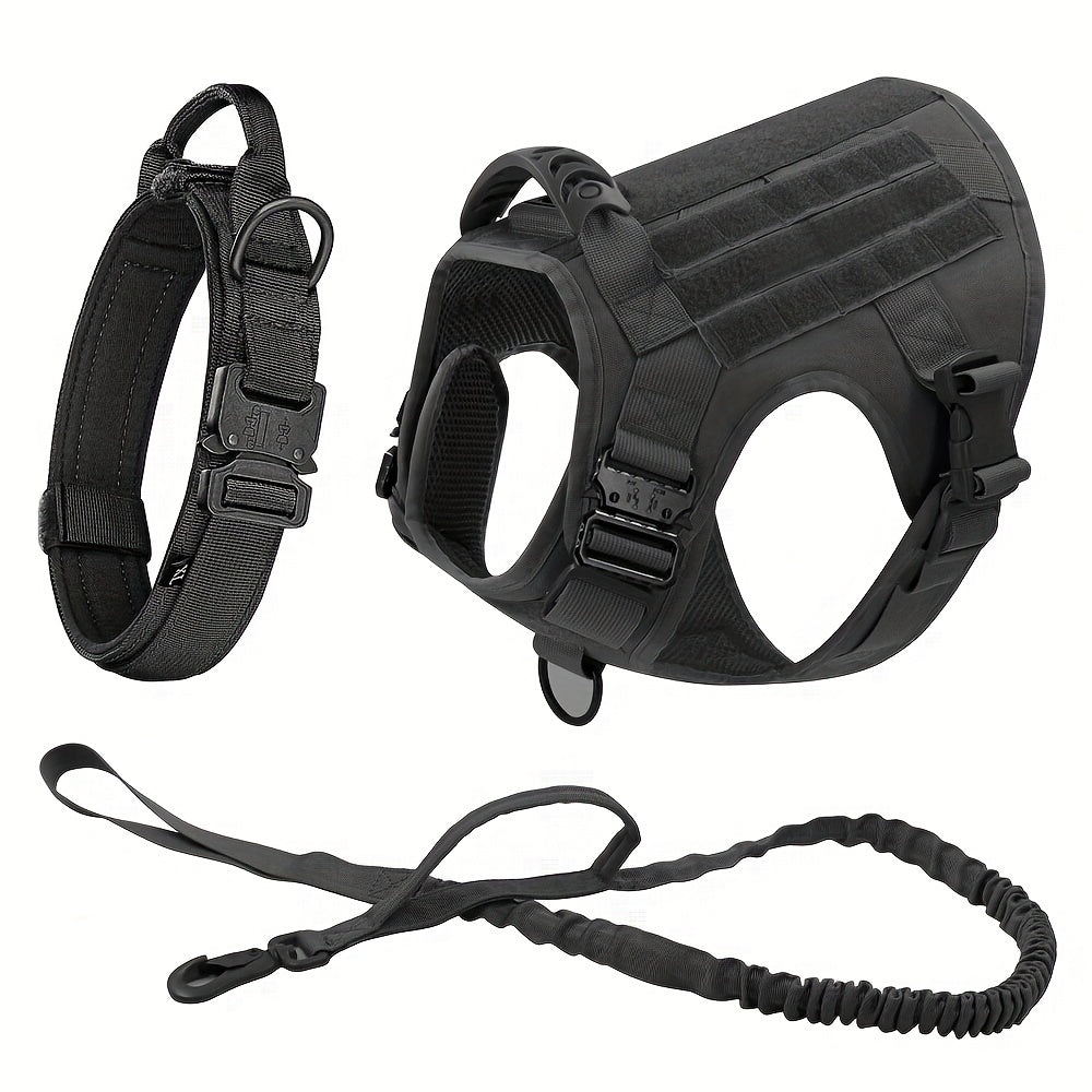 3pcs Set Dog Harness Vest Collar Leash Set - Without Battery Black