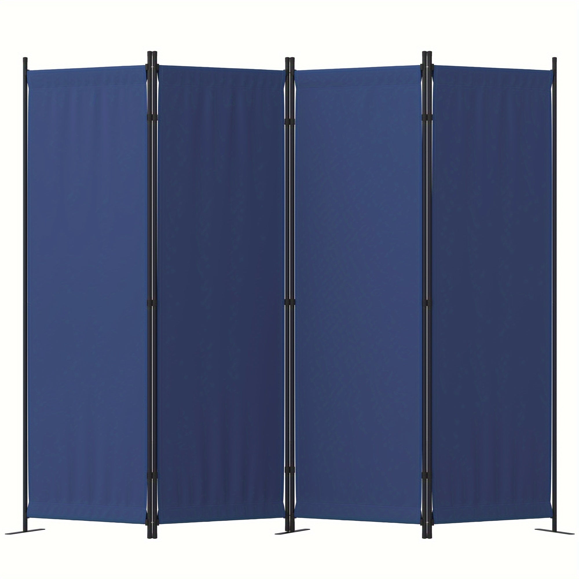 4-Panel Black Privacy Screen - Modern Folding Room Divider with Sturdy Metal Frame, Easy Assembly & Space-Saving Design, Perfect for Office, Bedroom, Hospital - Durable, Wrinkle-Resistant Fabric, Room Dividers And Folding Privacy Screens Blue
