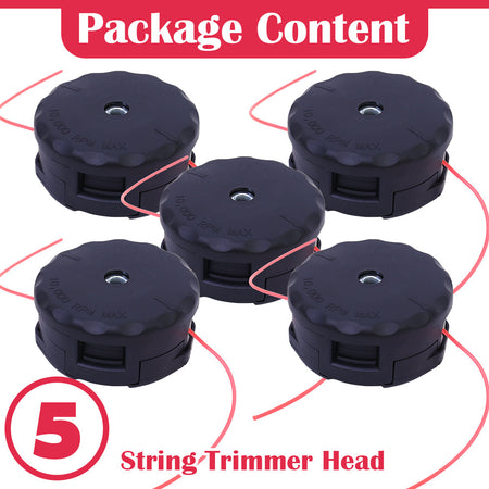 5pcs Echo Compatible Durable Nylon Strimmer Heads - Easy-Install, Solid Black Weed & Grass Trimmer Heads with M10*1.25 Bolt - Compatible with Speed-Feed 400 SRM-225 SRM-230 SRM-210 Models