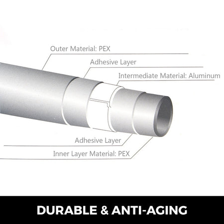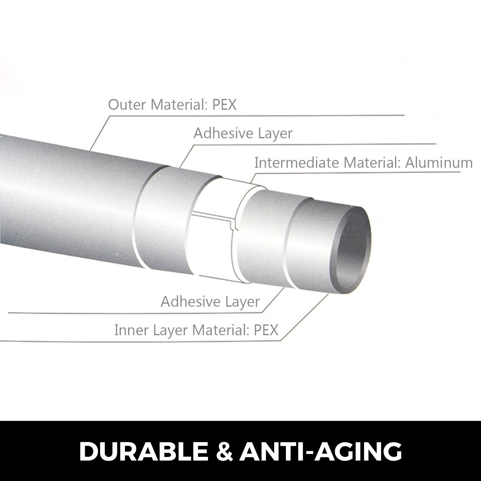 656Ft Roll of 1/2" PEX-AL-PEX Tubing Oxygen Barrier Radiant Floor PEX Pipe Radiant Heat Floor Heating Plumbing 200M Inner Aluminum Layer PEX Tubing Pipe (1/2" O2-Barrier, 656Ft/White)