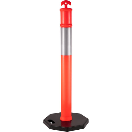 6Pack Traffic Delineator Posts 44 Inch Height, PE Delineator Cones Post Kit 10 inch Reflective Band, Delineators Post with Rubber Base 16 inch for Construction Sites, Facility Management etc.