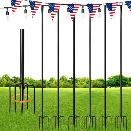 6pcs 10FT Metal String Light Poles For Outside With Fork, Hanging Light Poles For Patio, Backyard, Garden, Deck, Party, Wedding (no String Light, Only Pole)