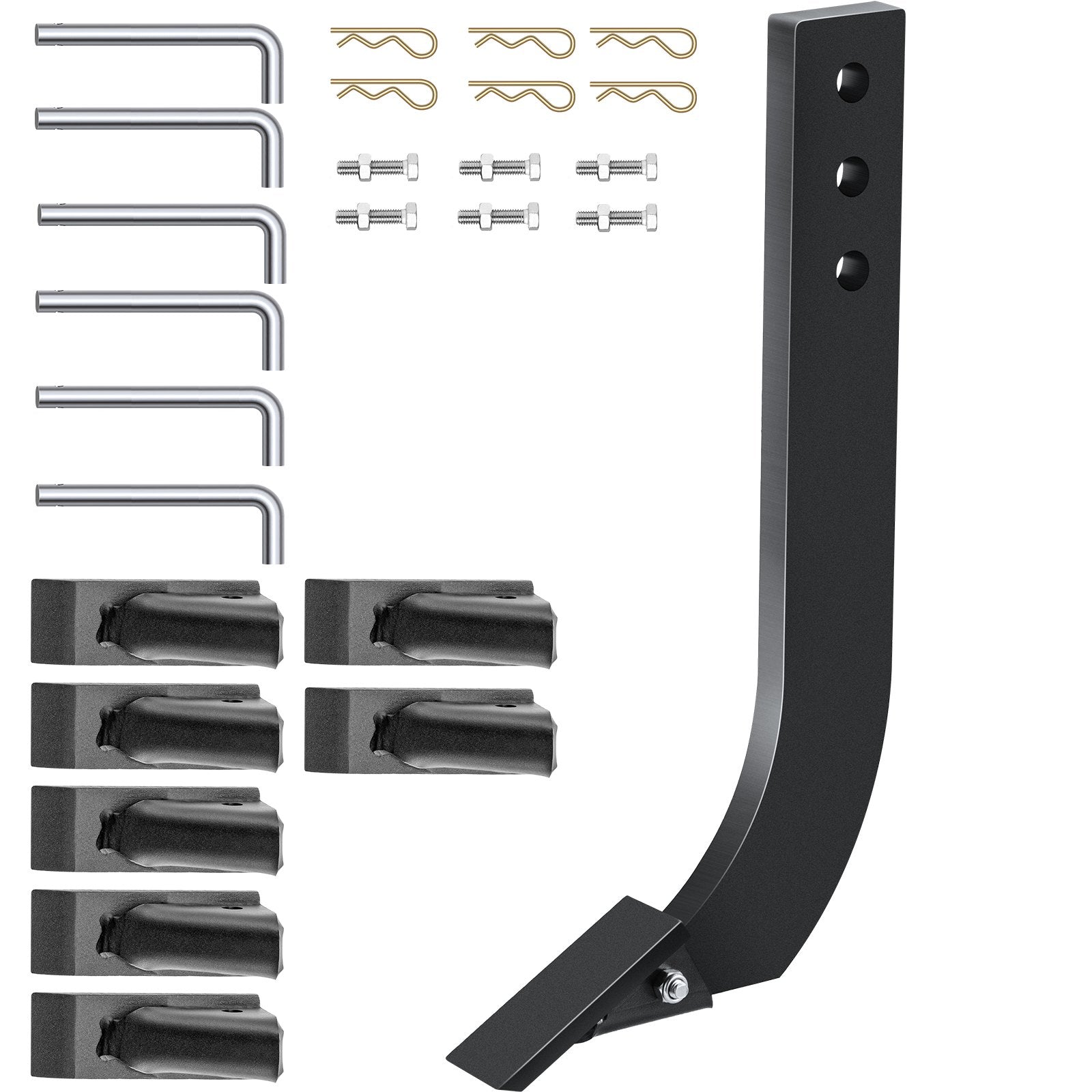 6pcs Box Blade Shank, 16'' Scarifier Shank, 3 Holes Box Scraper Shank, Ripper Shank with Removable Tapered Teeth and Pins, Adjustable Shanks Assembly for Replacement, Digging, Plowing