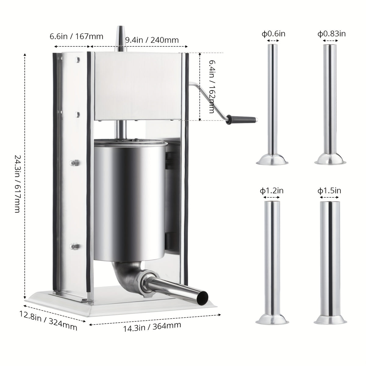 Sausage Stuffer Manual 7Lb3L Capacity Two Speed 304 Stainless Steel Sausage Filling Machine With 4 Stuffing Tubes Silver