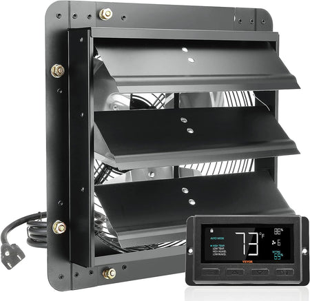 Shutter Exhaust Fan, 12'' with Speed Controller, AC-motor, 1000 CFM, No Assembly Required Wall Mount Attic Fan, Ventilation and Cooling for Greenhouses, Garages, Sheds, FCC Listed
