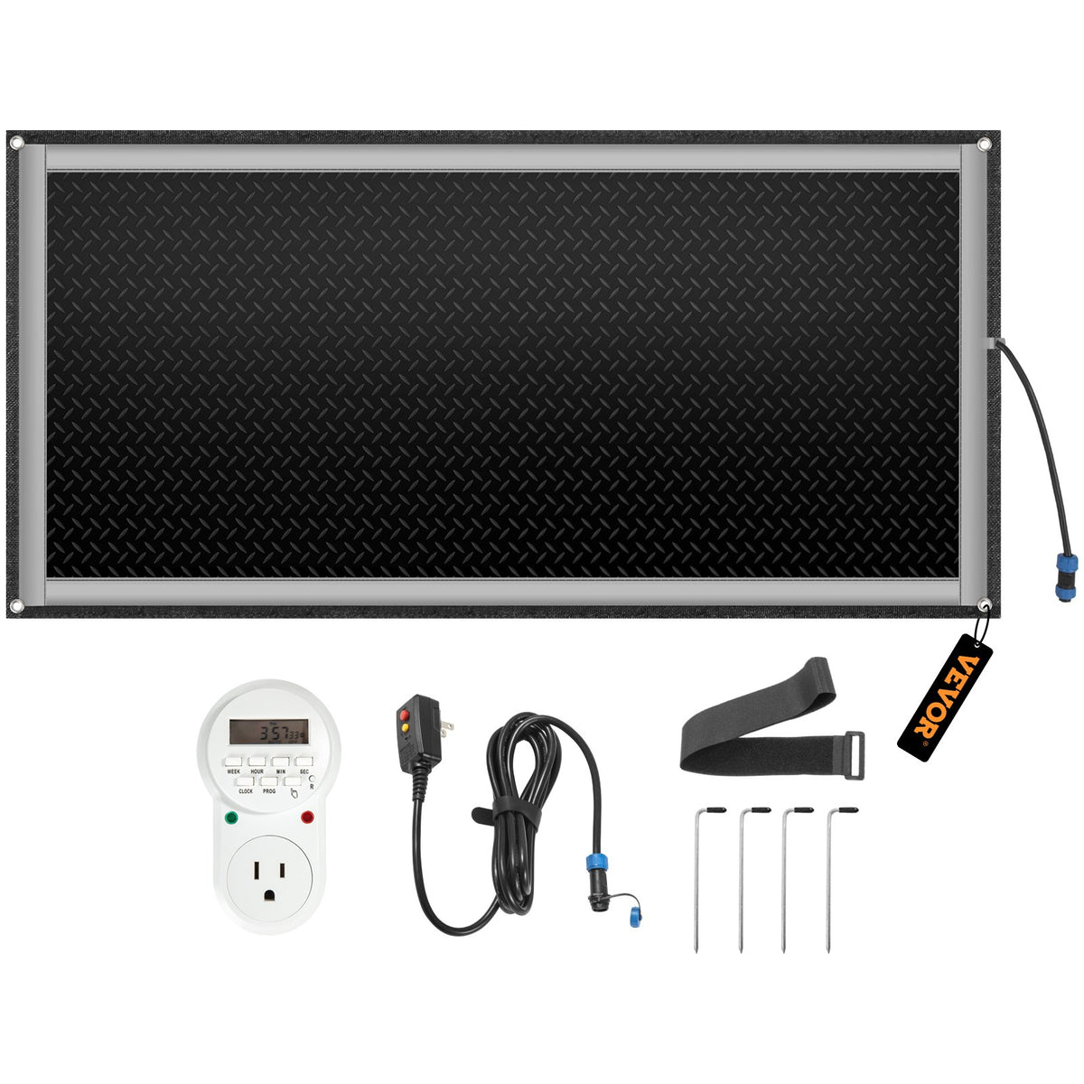 Snow Melting Mat 2023 New, 30 x 60 inch, 3 in/h Melting Speed, Heated Outdoor Mats for Winter Walkway, No-Slip Rubber w/Plug, Power Cord, Outlet Timer, Reflective Strip, Velcro, Ground Stake