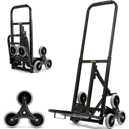 Stair Climbing Hand Truck, Heavy-Duty Hand Cart Dolly 375 lbs Load Capacity, Foldable Stair Climber Hand Trucks with Adjustable Handle, All Terrain Cart for Stairs with 10 Wheels