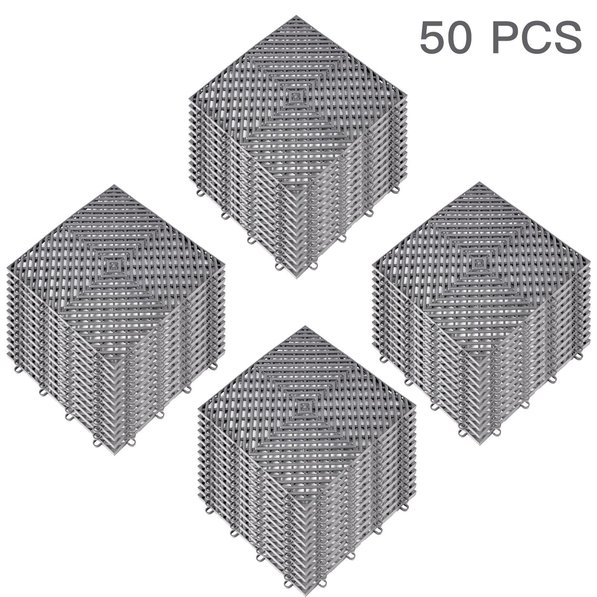 Tiles Interlocking 50 Pcs Gray Drainage Tiles 12X12X05 Inches Deck Tiles Outdoor Floor Tiles Outdoor Interlocking Tiles Deck Flooring For Pool Shower Bathroom Deck Patio Garage