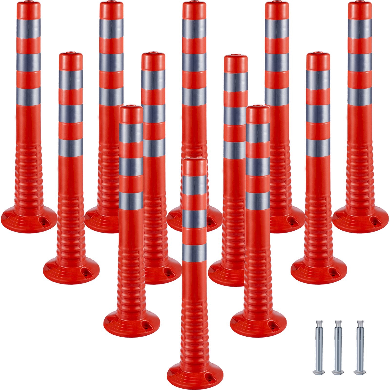 Traffic Delineator, 12 PCS Posts Channelizer Cone, Delineator Post Kit 30 in Height, PU Traffic Post, Orange Safety Cones, Portable Spring Posts with Base, Barrier Cones with Reflective Bands