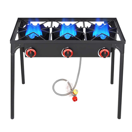 Trible Burner Stove HT-C-0043 Outdoor Portable Propane Stove Gas Cooker, Heavy Duty Iron Cast Patio Burner with Detachable Stand Legs for Camp Cooking