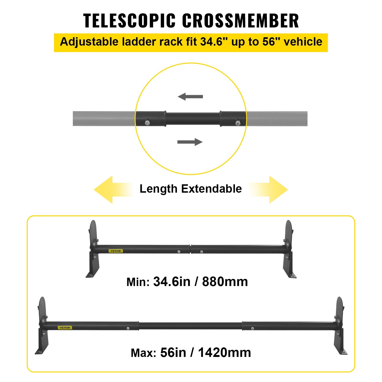Universal Van Ladder Roof Racks, 2 Bars, 331 LBS Capacity, 34.6"-56" Adjustable Matte Coating Van Rack, Compatible with Chevy Ford Express Fullsize Van, Black