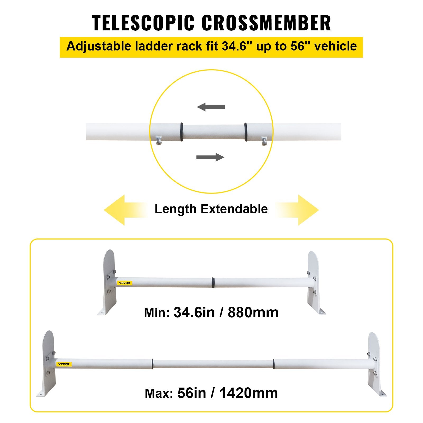 Universal Van Ladder Roof Racks 2 Bars 331 Lbs Capacity 346 56 Adjustable Matte Coating Van Rack Compatible With Chevy Ford Express Fullsize Van White