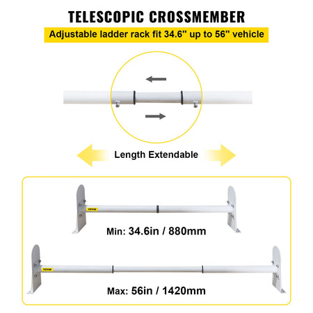 Universal Van Ladder Roof Racks, 2 Bars, 331 LBS Capacity, 34.6"-56" Adjustable Matte Coating Van Rack, Compatible with Chevy Ford Express Fullsize Van, White