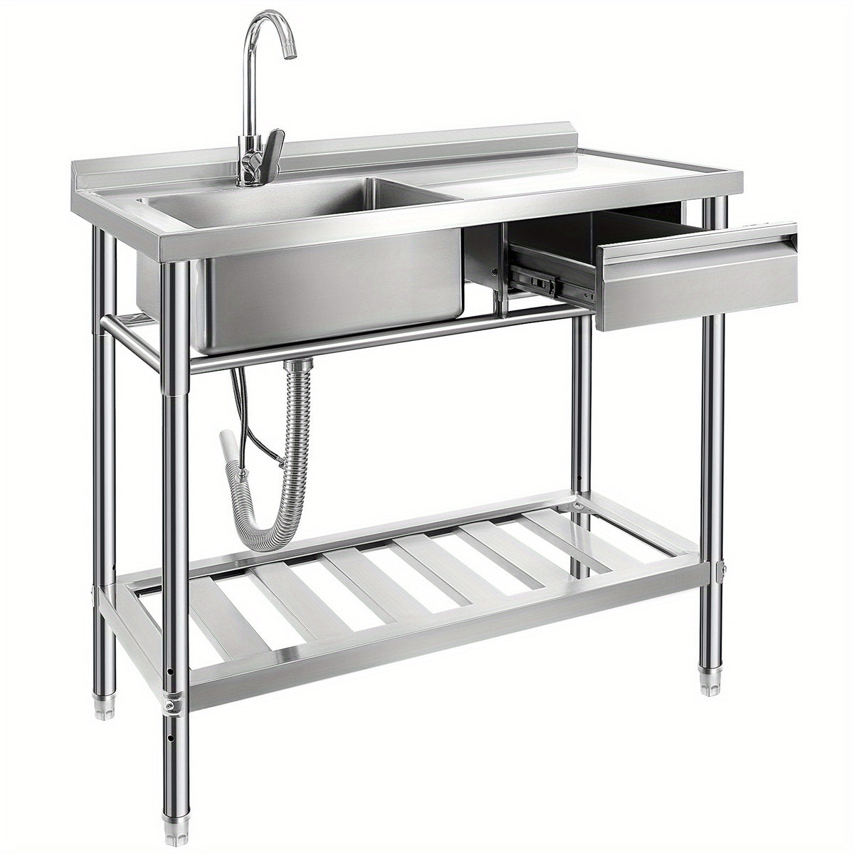 Versatile Stainless Steel Utility Sink Freestanding Single Bowl With Faucet Hot Cold Water Pipes For Kitchen Laundry Room Farmhouse Indooroutdoor Use 47 Sink With Right Drainboard