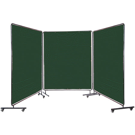 Welding Curtain 6' x 6' Welding Screens, Flame Retardant 3 Panel Welding Curtain with Frame and Wheels, Translucent Welding Shield, Flame Resistance Weld Curtain, Adjustable Size, Green