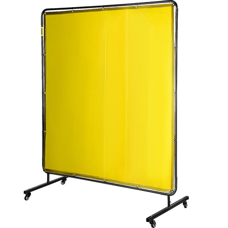 Welding Screen with Frame 6' x 6', Welding Curtain with 4 Wheels, Welding Protection Screen Yellow Flame-Resistant Vinyl, Portable Light-Proof Professional